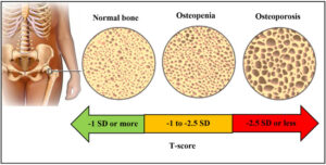 The most accurate method for evaluating bone density is through “Dual Energy X-ray Absorptiometry”, otherwise known as DEXA. The results of this test are expressed as T-scores (compared to healthy young individual) and Z-scores (age matched). A T-score between 0 and -1 is considered normal, between -1 and -2.5 indicates osteopenia and -2.5 or lower suggests osteoporosis. The lower the bone density, the weaker the bones become and the higher the risk of fractures. Maintaining an optimal bone density is essential for skeletal integrity, particularly in aging populations.